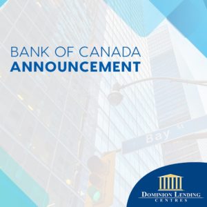 The Bank of Canada reduced its target for the overnight rate by 25 basis points (0.25 %) to 2.25%.  This means Prime Rate is now 4.45%.